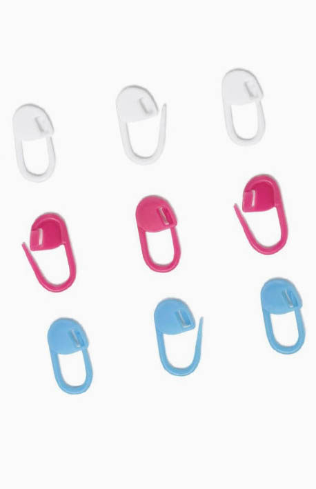 Komplet markerów Prym to 30 małych, plastikowych agrafek w 3 kolorach, które pozwalają na ich użytkowanie w robótkach na drutach i na szydełku, ponieważ są otwierane.
